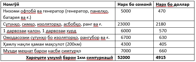 ТАҲЛИЛИ ХАРОҶОТ ВА МАНФИАТҲОИ СИМТУРИ БАРҚИИ ОФТОБӢ